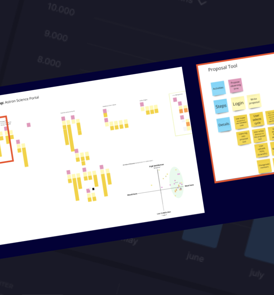 Bij ASTRON heb ik mijn UX-visie concreet gemaakt door het faciliteren en organiseren van focusgroepen met zowel gebruikers als stakeholders. Tijdens deze sessies combineerde ik kwalitatief gebruikersonderzoek met strategische inzichten om de echte pijnpunten en behoeften in kaart te brengen. Door actief te luisteren en usecases te bespreken, konden we gezamenlijke prioriteiten bepalen en richting geven aan het ontwerp. In deze sessies heb ik verschillende methodieken gebruikt om tot de journeys en prototypes te komen.